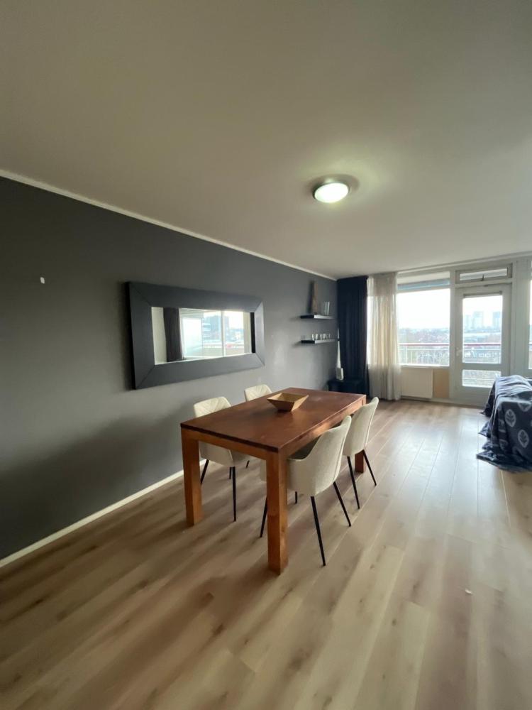 Royale woonkamer is voorzien van een nette laminaat vloer. Door de grote raampartijen is er veel lichtinval en heeft u een prachtig uitzicht over de stad. Via de woonkamer heeft u toegang tot het zeer ruime overdekte balkon over de gehele breedte van het appartement. Het ruime balkon is ca. 8,5 m2. De woonkamer beschikt over een nette open keuken.