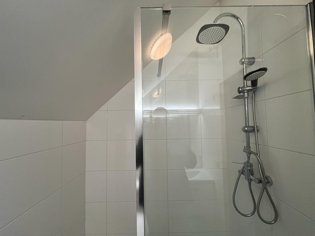 De kamer beschikt over een eigen badkamer met inloopdouche, wastafel en toilet.