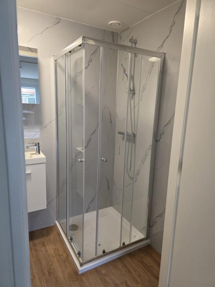 Badkamer met douche, toilet en wastafel (gedeeld met medebewoners)