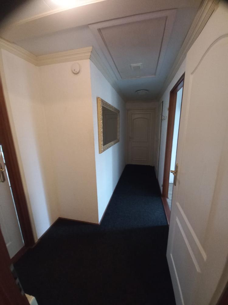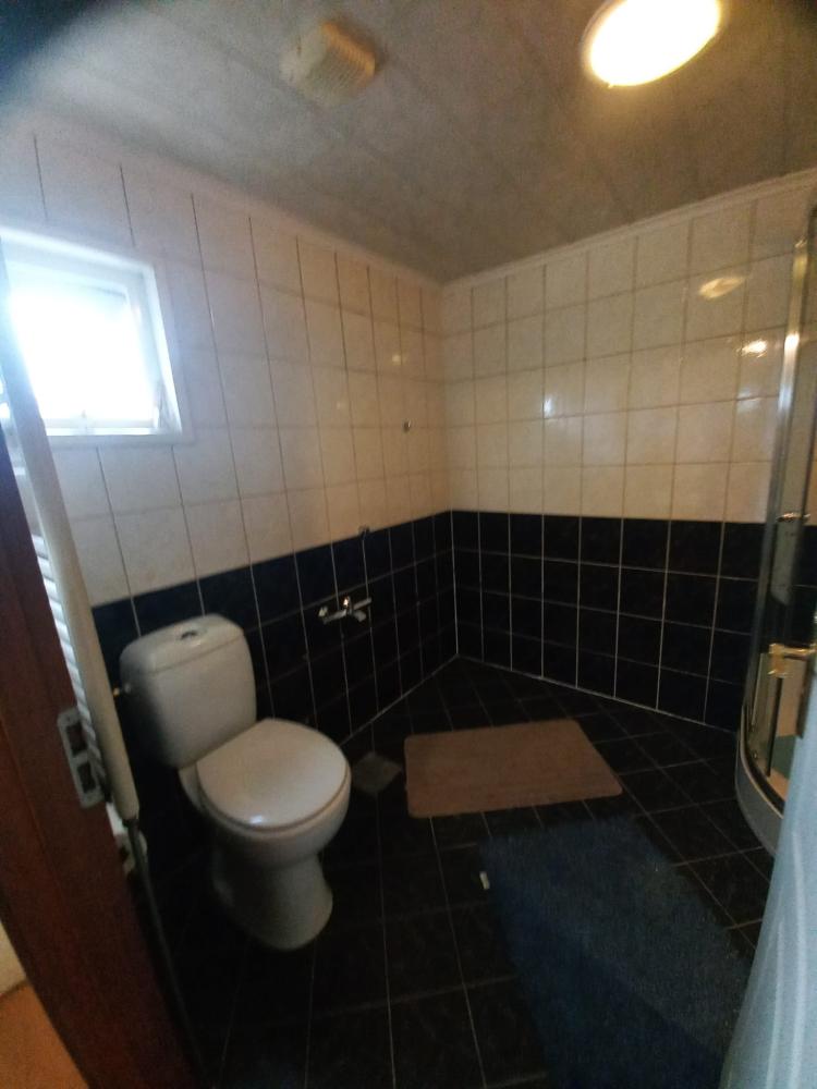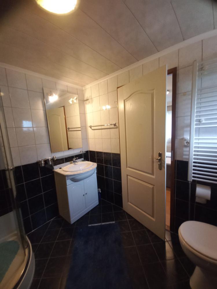 De nette geheel betegelde badkamer is voorzien van een douche, wastafel en toilet. Tevens bevindt zich hier de aansluiting voor de wasmachine.