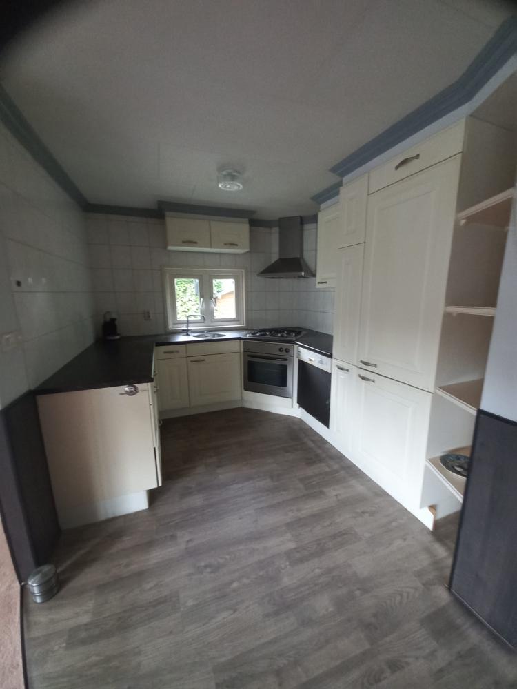 De ruime keuken in hoekopstelling is voorzien is van allerlei inbouwapparatuur, zoals een gaskookplaat, afzuigkap, koelkast en vaatwasser.