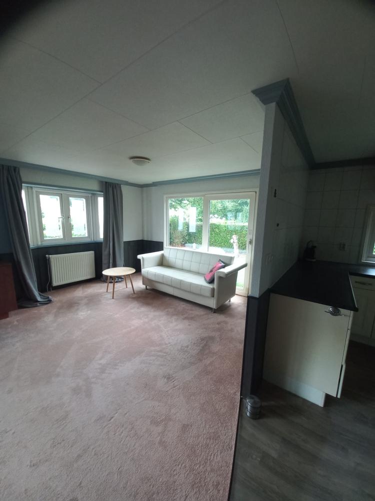 De woonkamer beschikt over een nette laminaatvloer en geniet van veel lichtinval middels de grote raampartij. De woonkamer biedt u toegang middels een deur tot de tuin.